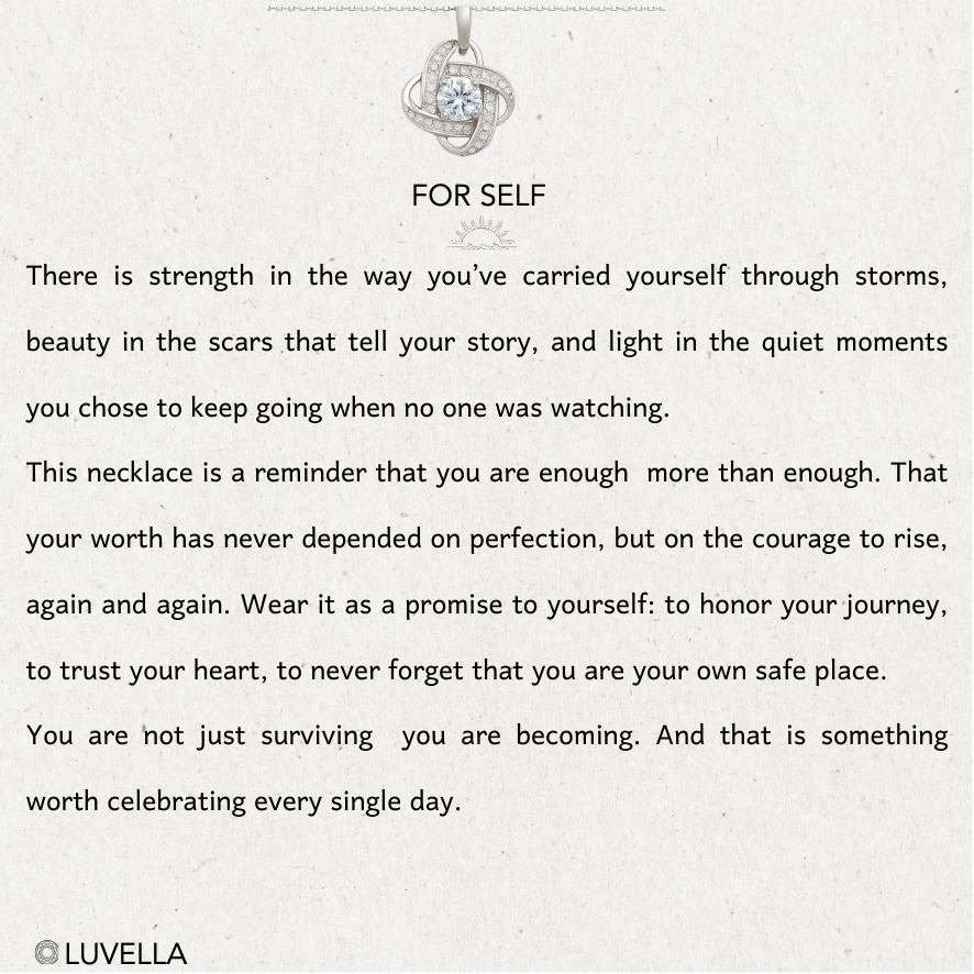 The You Are Enough Eternal Knot Necklace celebrates resilience, renewal, and quiet confidence – a meaningful keepsake for yourself or someone who embodies the courage to keep growing.