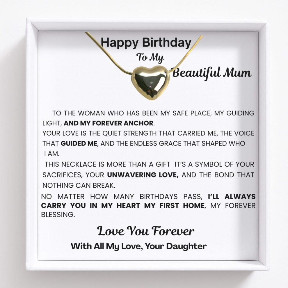 Whether it’s a milestone birthday or simply a day to celebrate the incredible woman she is, this necklace is a meaningful way to say, “Thank you, Mum – you’ll always be my heart, my home, and my forever blessing.”