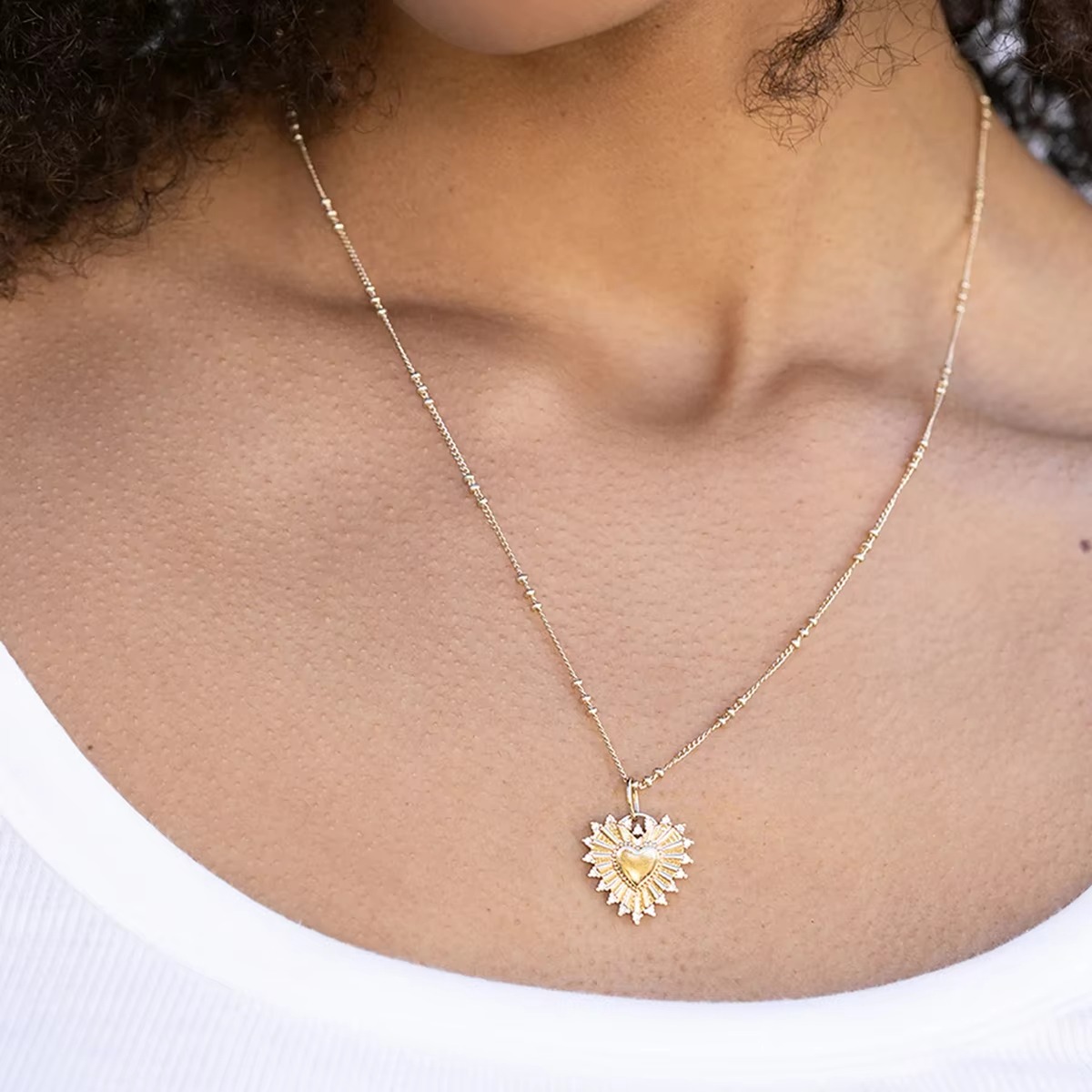 Made with 18K gold-plated stainless steel and finished with a classic chain, this necklace is lightweight, comfortable, and perfect for everyday wear or special occasions.