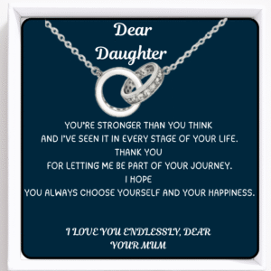 Two interlocked circles represent an eternal connection between mother and daughter – unshakable, unending, and infinite. The message card expresses it perfectly: