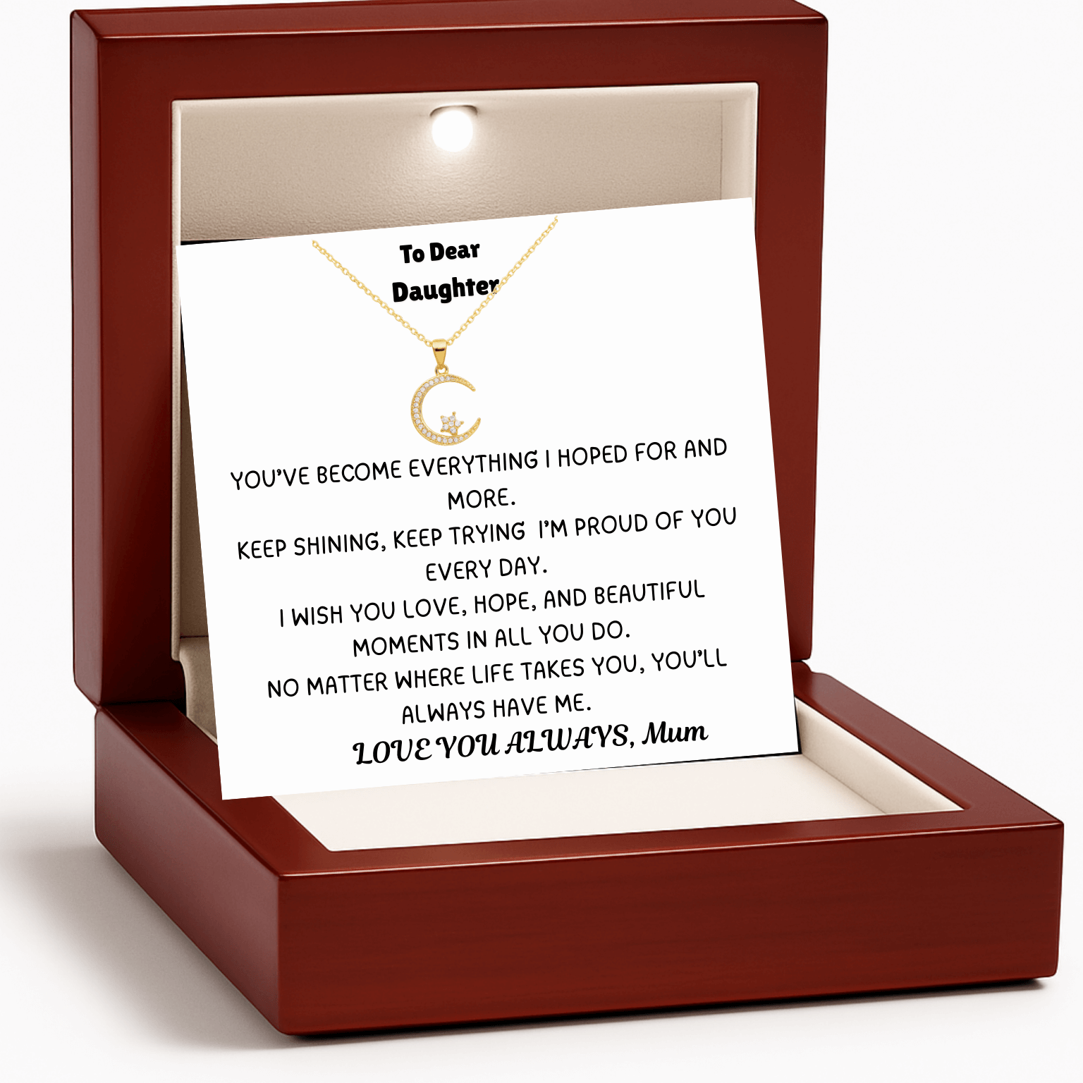Your daughter is your brightest light – strong, kind, and full of promise. The My Guiding Star Necklace is a heartfelt reminder that no matter how far she travels, she will always carry your love and guidance with her.