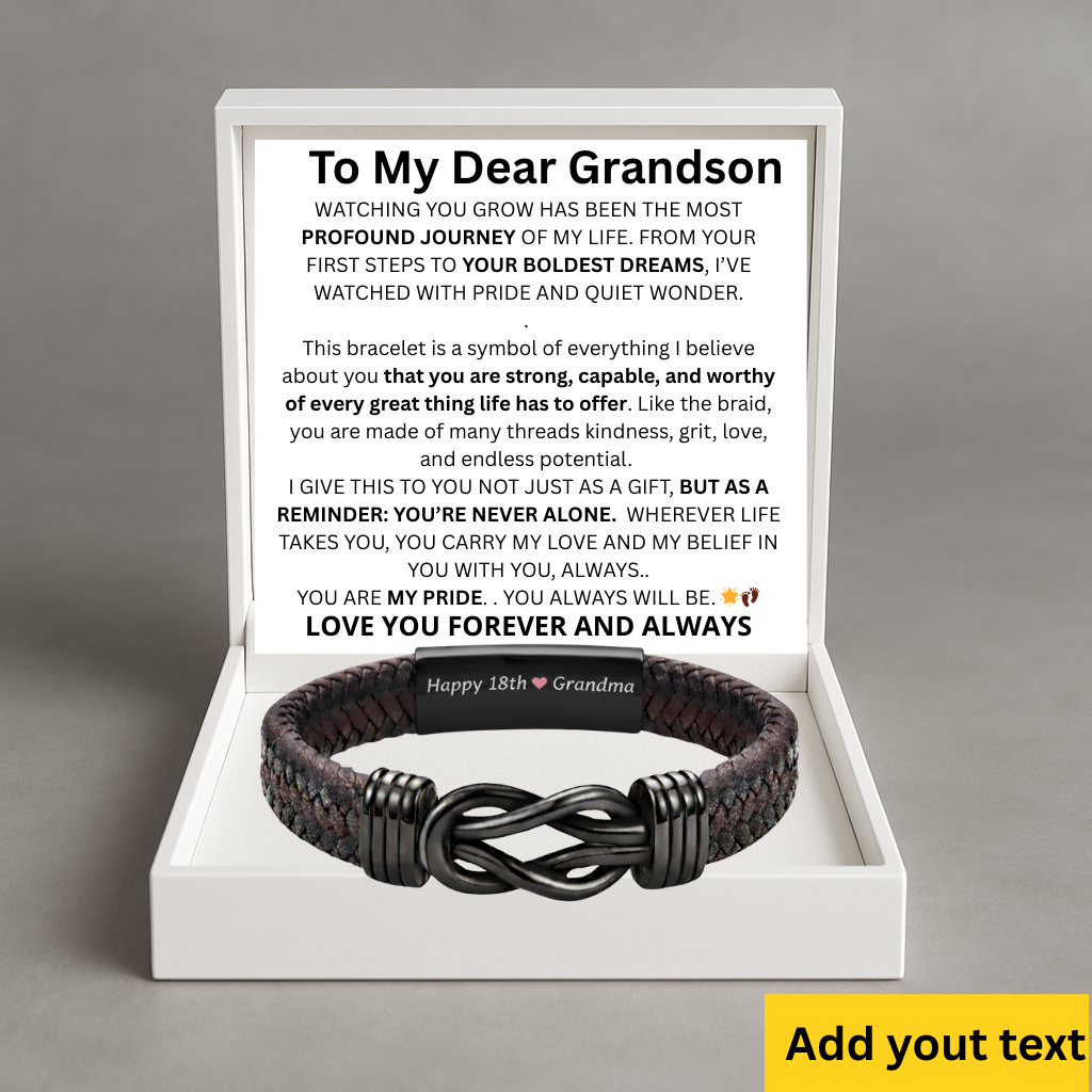 This promise bracelet is more than an accessory it’s a symbol of strength, love, and the unbreakable bond you share with your grandson. Designed to be worn every day, it serves as a quiet reminder that he is supported, believed in, and deeply loved.