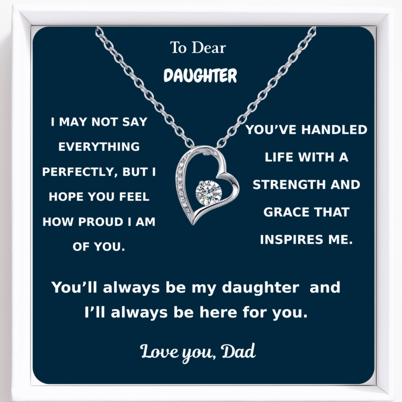 The interlocking heart design reflects a bond built on love, strength, and unwavering support. The included message card expresses everything a father holds in his heart for his daughter, in simple and timeless words.